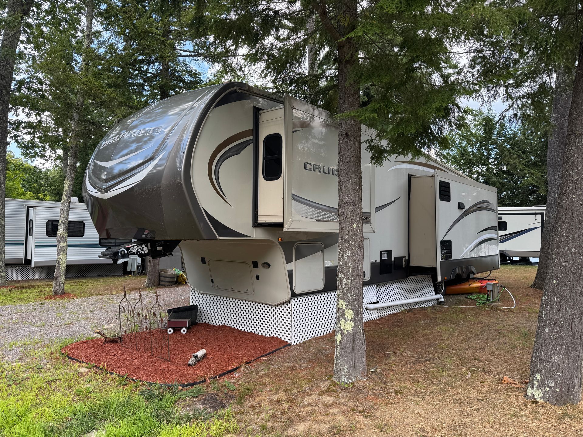 Looking for the perfect getaway home on wheels? This beautifully maintained 2016 Cruiser CF322RL is ready to make your RV dreams come true! Currently nestled at Tippicanoe Campground on seasonal site #4 Chapel Rock in Goshen, NH, this spacious and comfortable fifth wheel offers all the comforts of home with a touch of luxury.